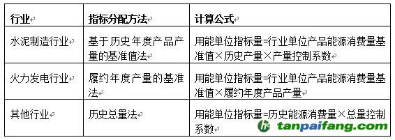 表2.福建省用能權(quán)市場各行業(yè)指標分配方法