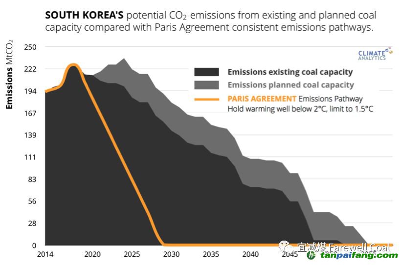 上圖顯示了韓國(guó)兌現(xiàn)巴黎協(xié)定目標(biāo)、現(xiàn)有煤電能力、新建煤電廠上網(wǎng)三種情形下的碳排放。 本`文@內(nèi)/容/來(lái)/自:中-國(guó)^碳-排-放^*交*易^網(wǎng)-tan pai fang. com