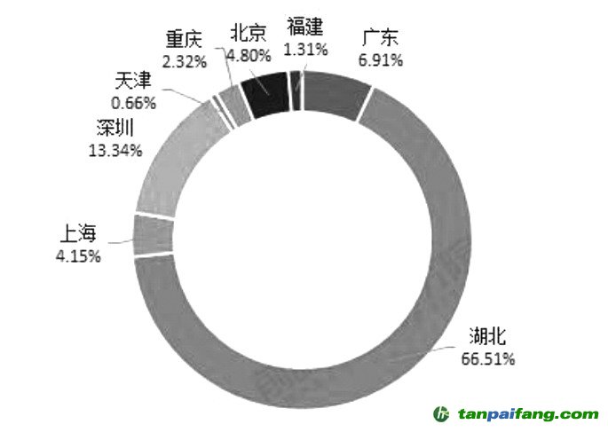 圖為2013—2018年我國(guó)碳排放交易額區(qū)域分布情況 本%文$內(nèi)-容-來(lái)-自;中_國(guó)_碳|排 放_(tái)交-易^網(wǎng)^t an pa i fang . c om