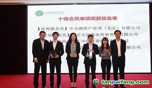 本次會(huì)員大會(huì)的重頭戲,是對(duì)為北京碳市場(chǎng)做出卓越貢獻(xiàn)的環(huán)交所會(huì)員單位進(jìn)行表彰。會(huì)上正式揭曉了環(huán)交所“十佳會(huì)員”評(píng)選結(jié)果,中國(guó)建材檢驗(yàn)認(rèn)證集團(tuán)股份有限公司、深圳英威騰能源管理有限公司、北京太銘基業(yè)投資咨詢有限公司、卡本碳資產(chǎn)管理(北京)有限公司、北京京能源創(chuàng)碳資產(chǎn)管理有限公司、漢能碳資產(chǎn)管理(北京)股份有限公司、億利資源集團(tuán)有限公司、中信證券股份有限公司、金諾投資管理有限公司、中碳能投科技(北京)有限公司獲選為環(huán)交所2015年度“十佳會(huì)員”。其中四家會(huì)員同時(shí)還獲頒四個(gè)單項(xiàng)獎(jiǎng),卡本碳資產(chǎn)管理(北京)有限公司榮獲“優(yōu)秀服務(wù)獎(jiǎng)”,北京太銘基業(yè)投資咨詢有限公司榮獲“市場(chǎng)開(kāi)拓獎(jiǎng)”,中信證券股份有限公司榮獲“創(chuàng)新價(jià)值獎(jiǎng)”,北京京能源創(chuàng)碳資產(chǎn)管理有限公司榮獲“最佳實(shí)踐獎(jiǎng)”。