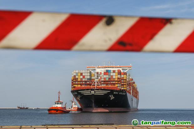 全球上最大的集裝箱船進(jìn)入波蘭格但斯克港。圖片來(lái)源:Alamy